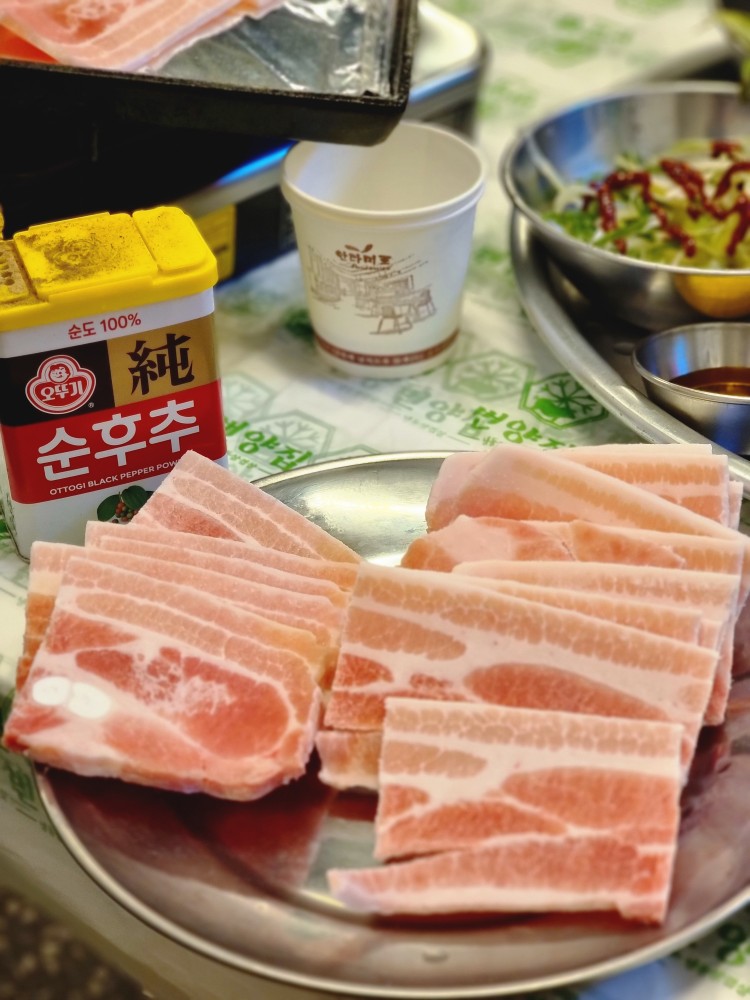 냉동삼겹살과 함께 나오는 다양한 반찬들 역시 이 집의 또 다른 매력입니다. 특히, 김치, 마늘, 양파 등 기본적인 반찬 외에도 여러 가지 소스가 제공돼 삼겹살과 잘 어울립니다. 특히, 쌈장과 고추장이 특징인데, 각각 삼겹살의 맛을 더욱 돋보이게 해줍니다. 고기와 쌈장을 함께 먹으면, 삼겹살의 기름진 맛을 쌈장이 잡아줘서 더욱 풍부한 맛을 느낄 수 있습니다.