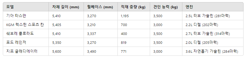 - 기아 타스만 vs 쉐보레 콜로라도 & 포드 레인저