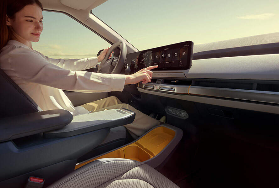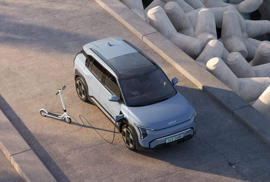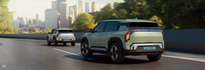 EV3는 미래지향적인 전기차 디자인과 기아의 새로운 패밀리룩을 반영한 모델입니다.