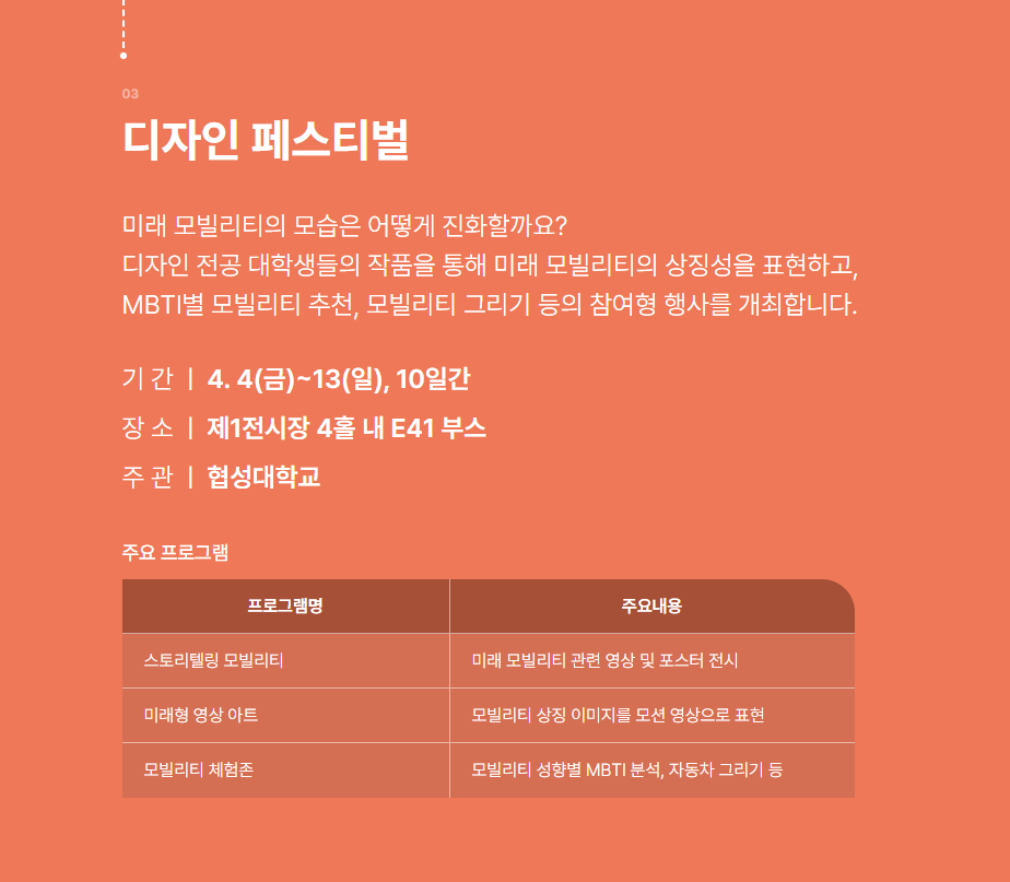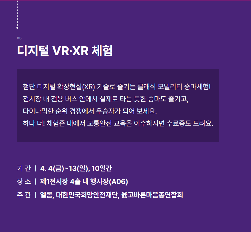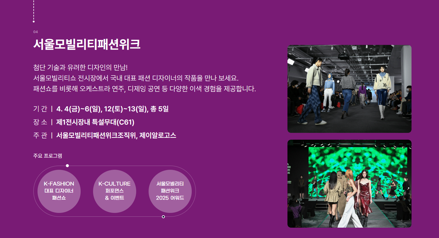 • 자동차 시승 체험, XR 전시, 패션쇼