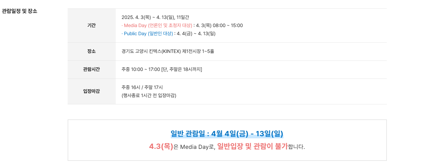• 장소: 경기도 고양시 킨텍스 제1전시장