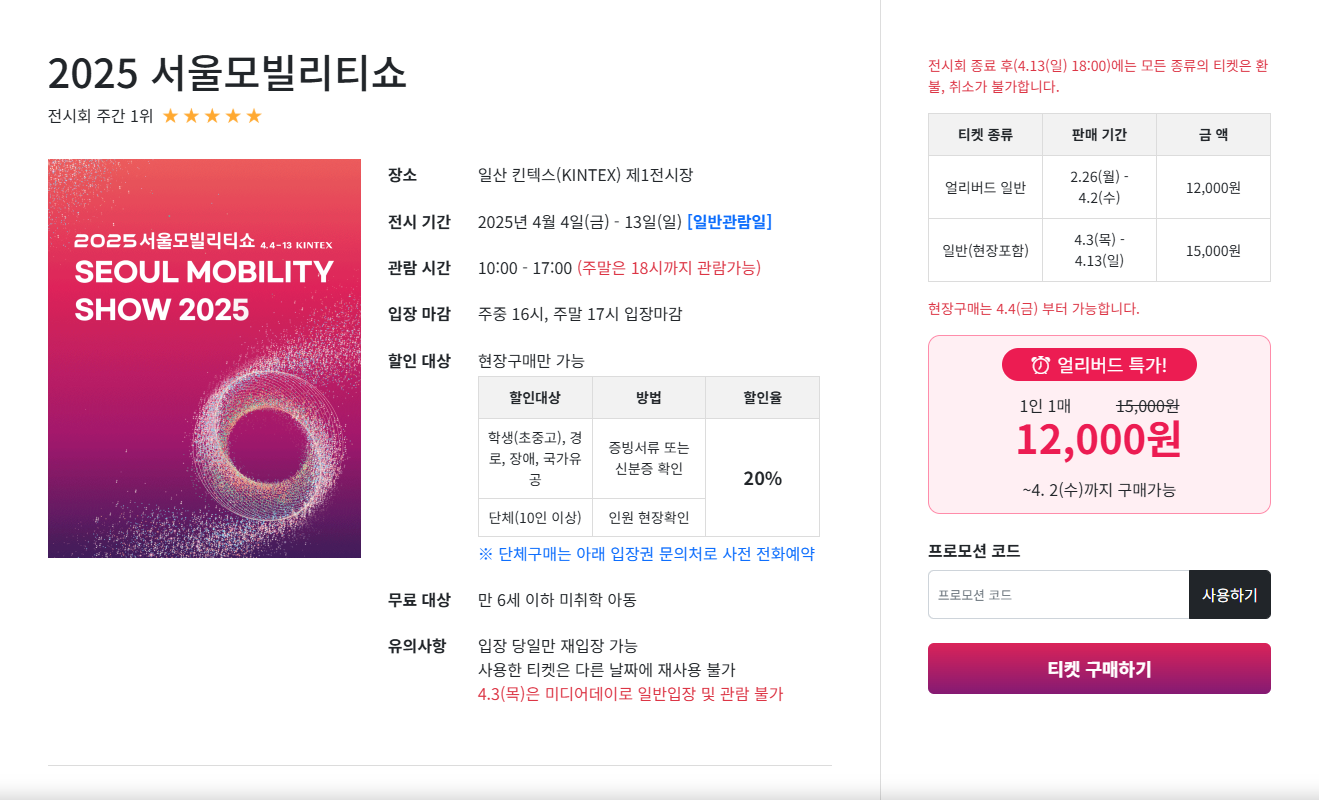 • 할인 혜택: 4월 2일까지 얼리버드 티켓 20% 할인