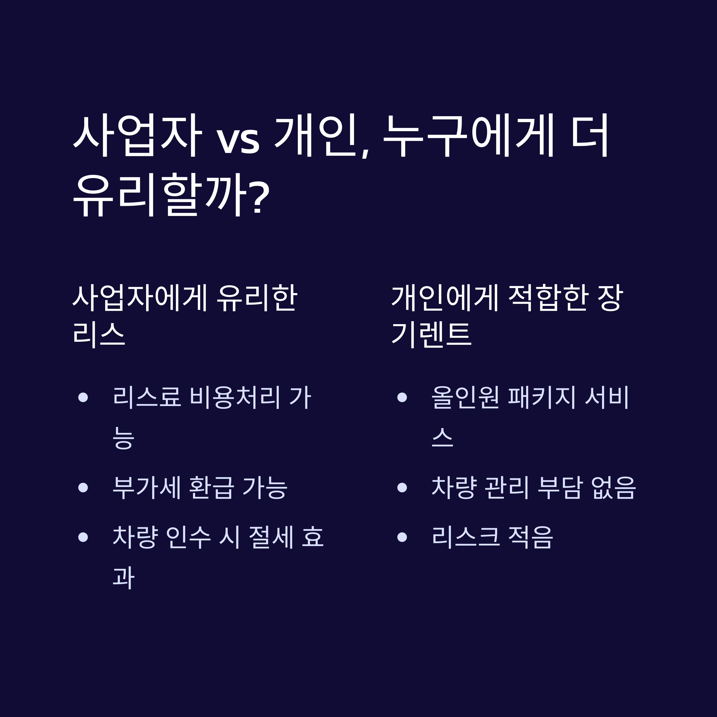 자동차 리스 vs 장기렌트 비교|개인·사업자에게 더 유리한 선택은?