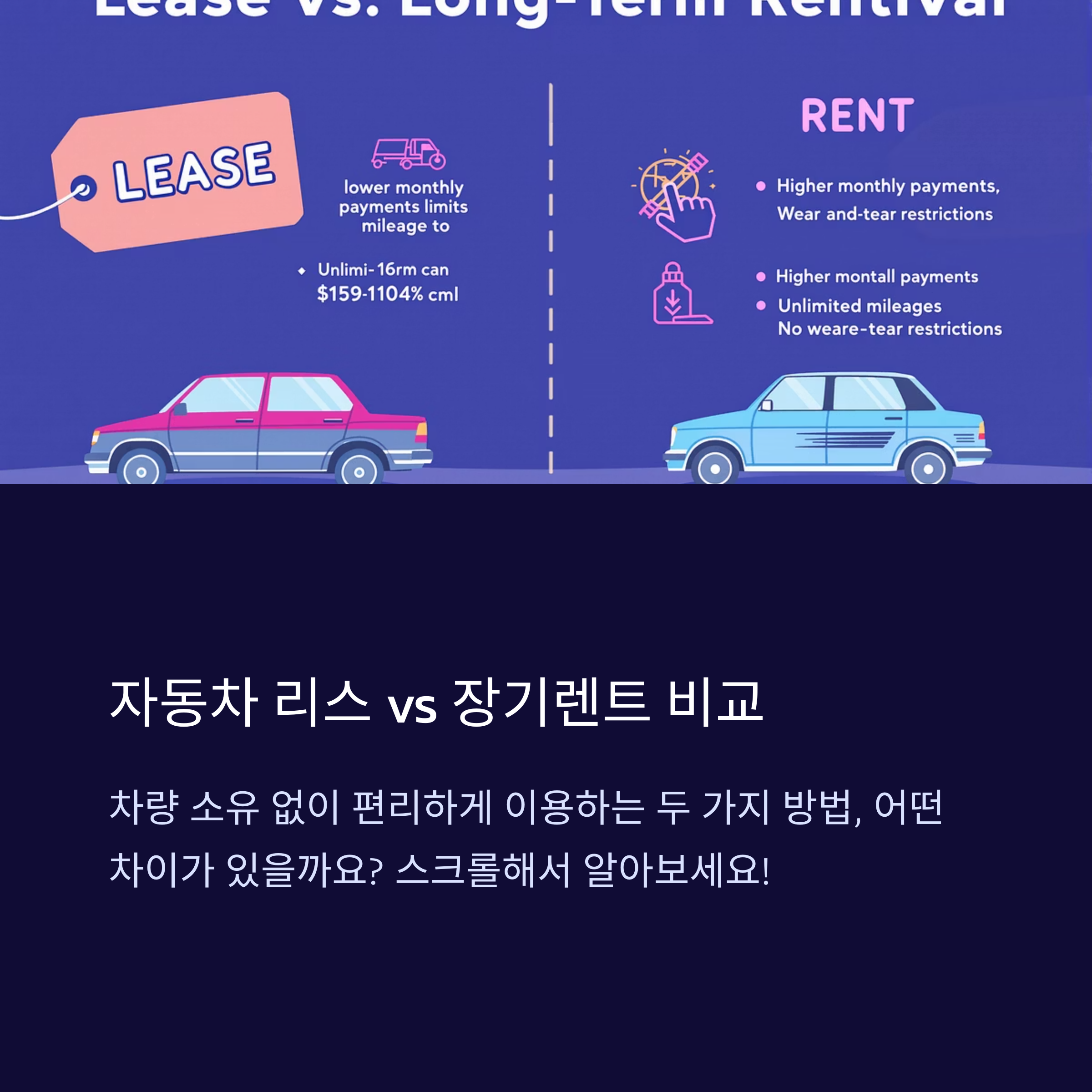 이 글에서는 리스와 장기렌트의 차이점을 명확히 비교하고, 상황별 유리한 선택을 도와드립니다.