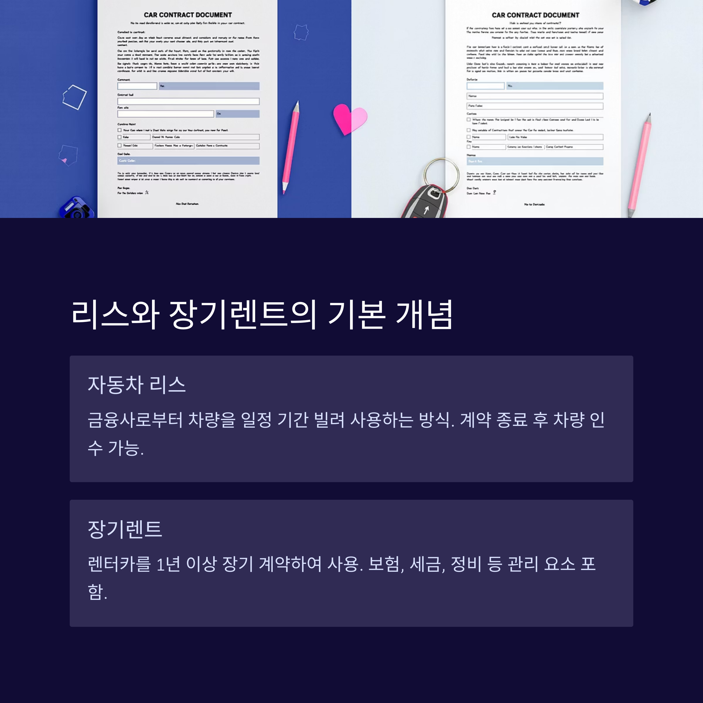 📌 자가용처럼 자주 운전하는 경우 리스가 유리할 수 있습니다.