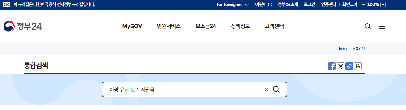 👉 보조금24에서 제공하는 차량 유지보수 지원금이 있는지 확인해보세요!(클릭)