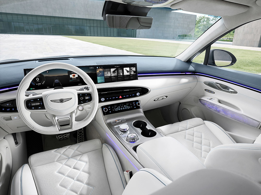 실내는 제네시스의 또 다른 디자인 철학인 ‘여백의 미’를 기반으로 타원형 중심의 독창적인 인테리어 테마를 적용해 고급스러운 공간으로 재탄생했습니다.
