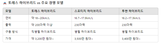 ✔️ 연비 효율 → 토레스 하이브리드 승