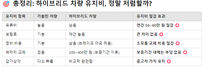 🎯 총정리: 하이브리드 차량 유지비, 정말 저렴할까?