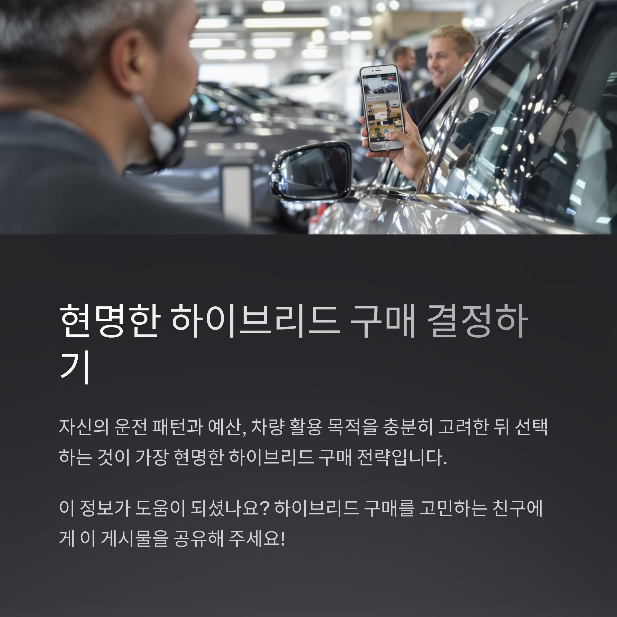 자신의 운전 패턴과 예산, 차량 활용 목적을 충분히 고려한 뒤 선택하는 것이 가장 현명한 하이브리드 구매 전략입니다.