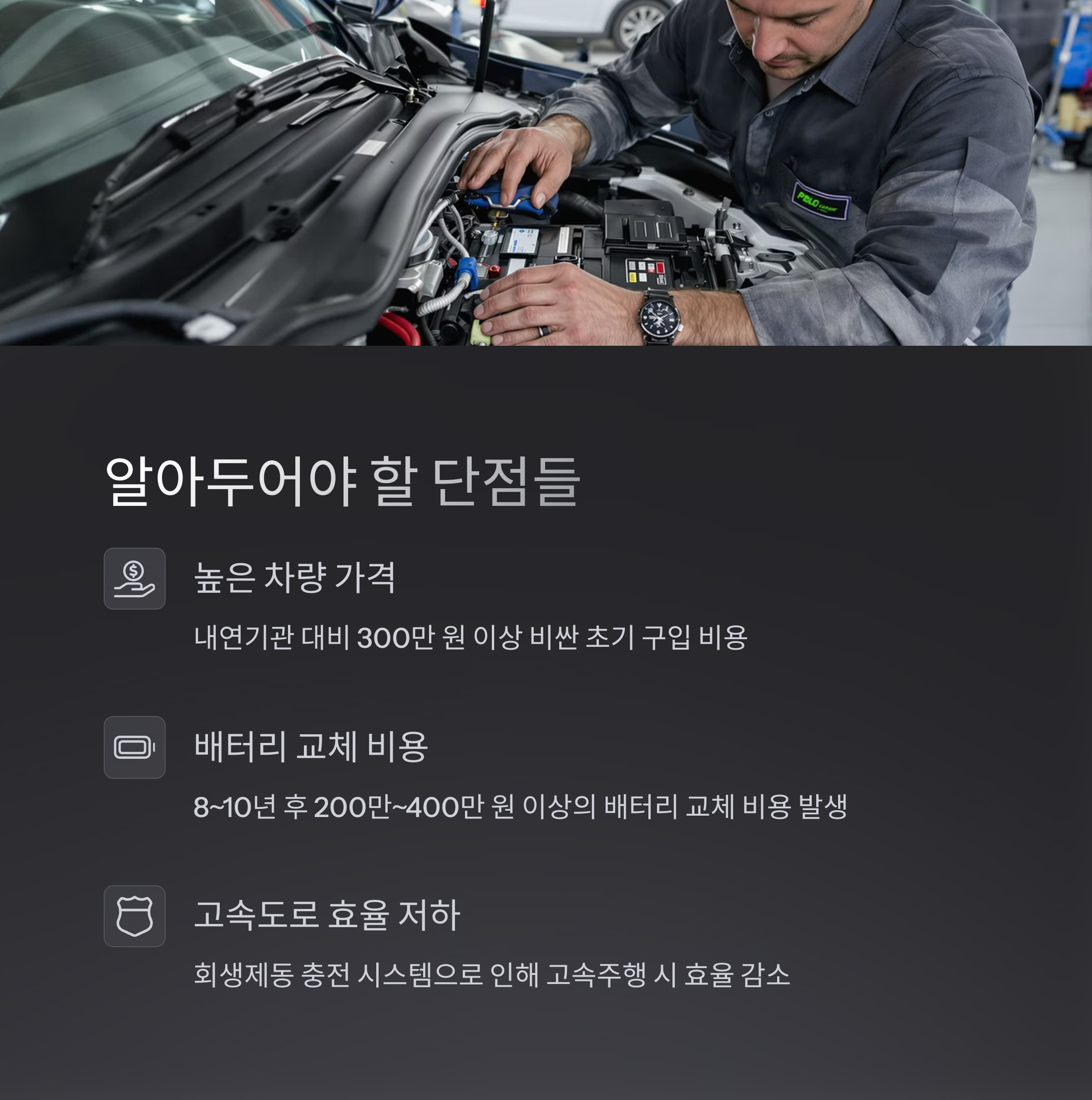 - 내연기관 대비 300만 원 이상 비싼 경우 흔함