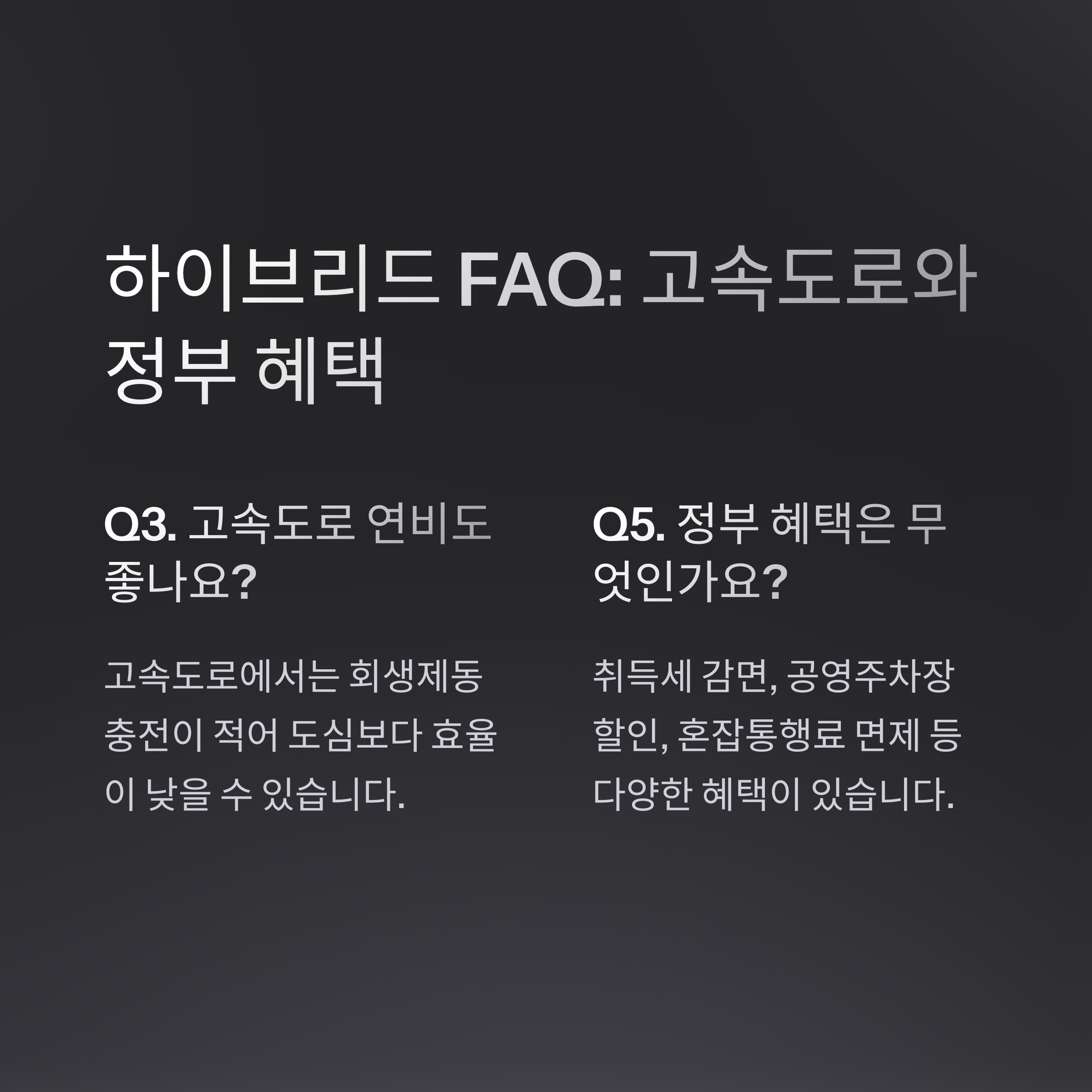 Q3. 하이브리드 자동차도 고속도로 연비가 좋나요?