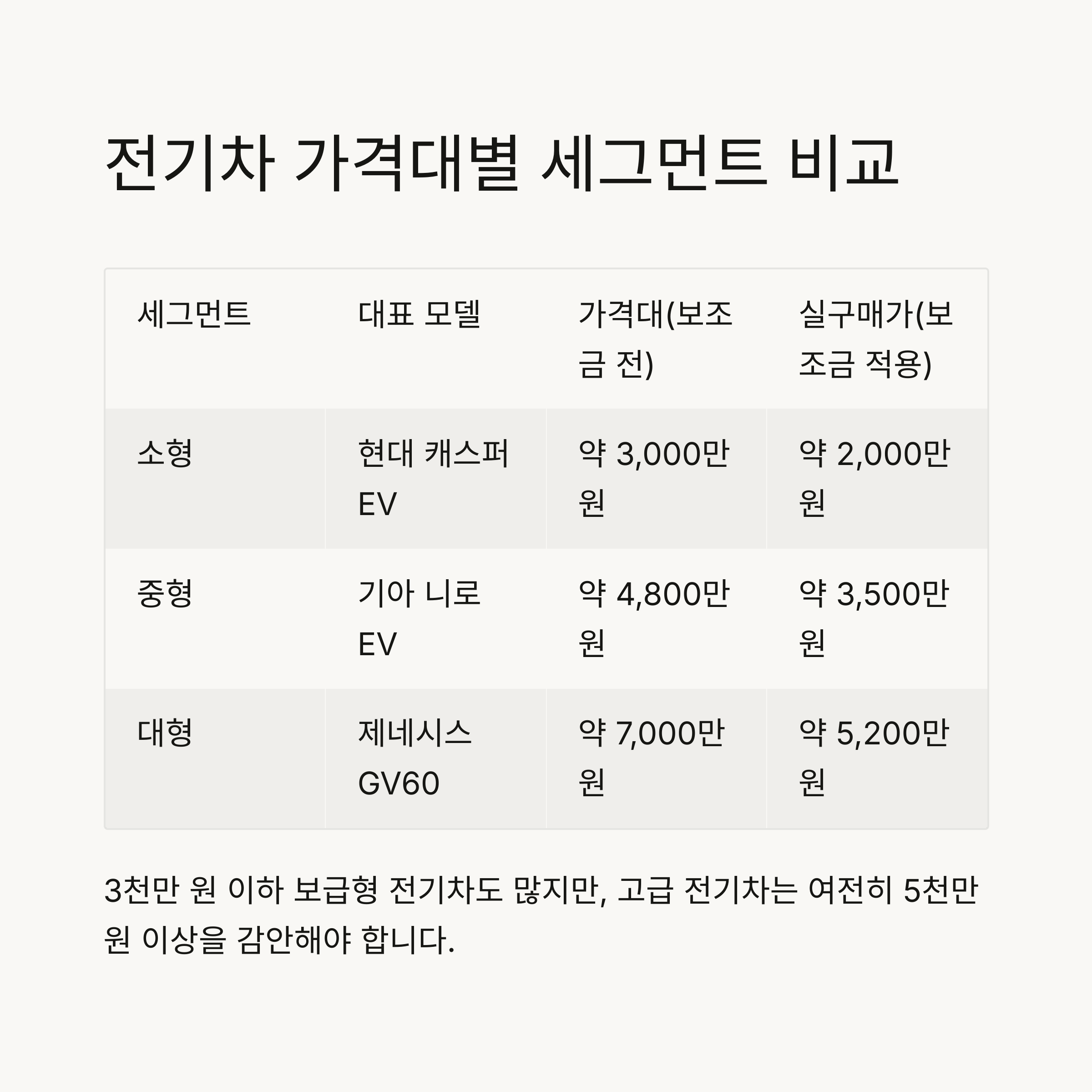 📌 전기차 가격대별 세그먼트 비교 (2025년 기준)
