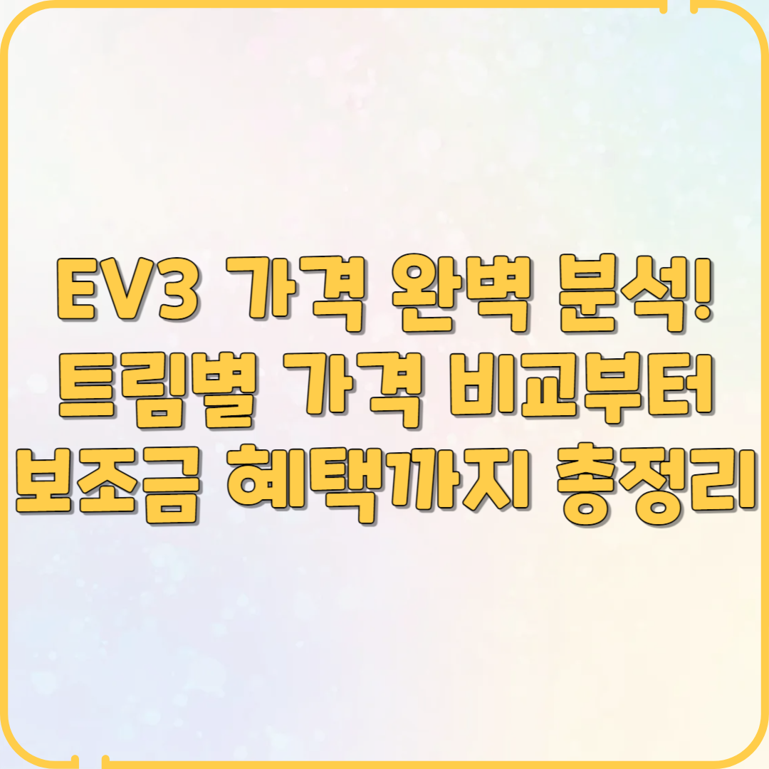 기아자동차의 최신 전기 SUV EV3 가격이 드디어 공개되었습니다. 전기차 수요가 폭발적으로 증가하고 있는 가운데, EV3는 합리적인 가격과 뛰어난 성능으로 많은 관심을 받고 있는데요. 오늘은 EV3의 트림별 가격 정보, 보조금 혜택, 옵션 사양까지 꼼꼼하게 분석해보겠습니다.